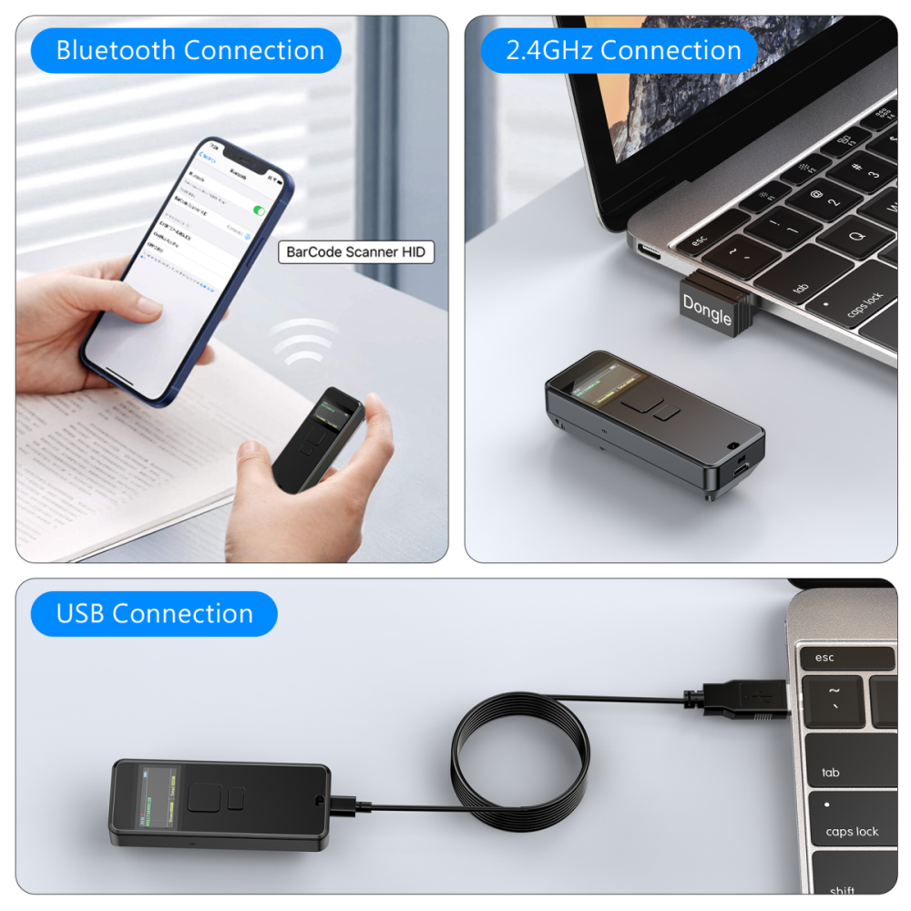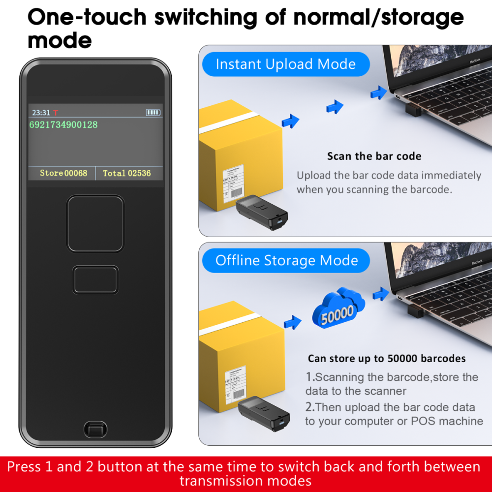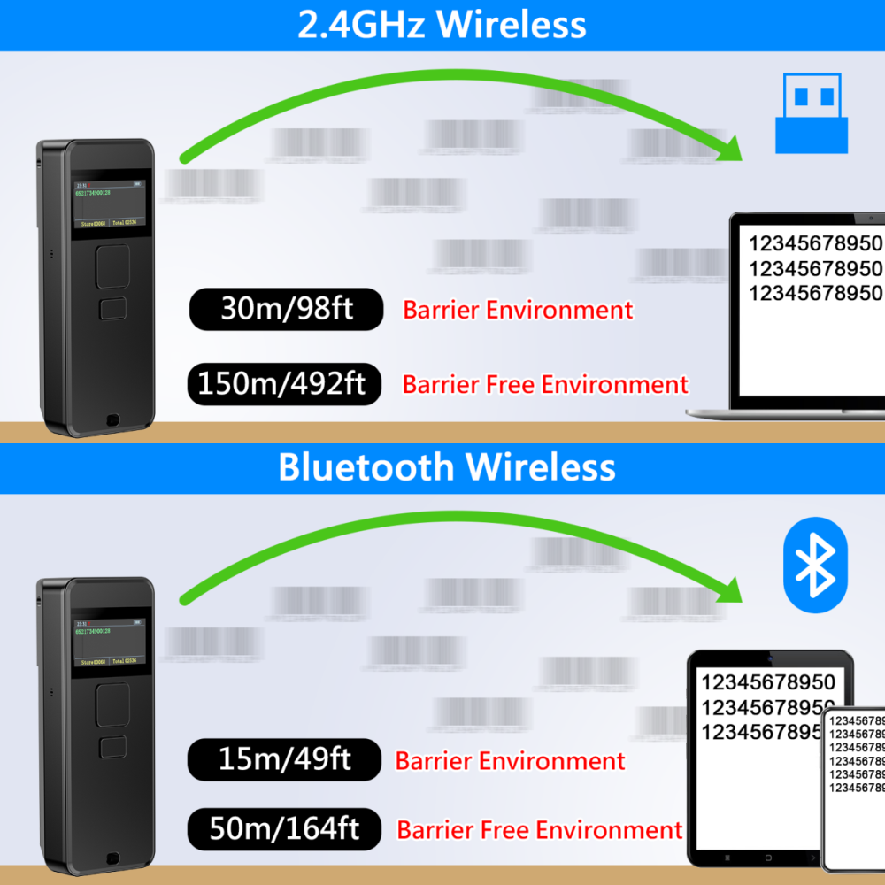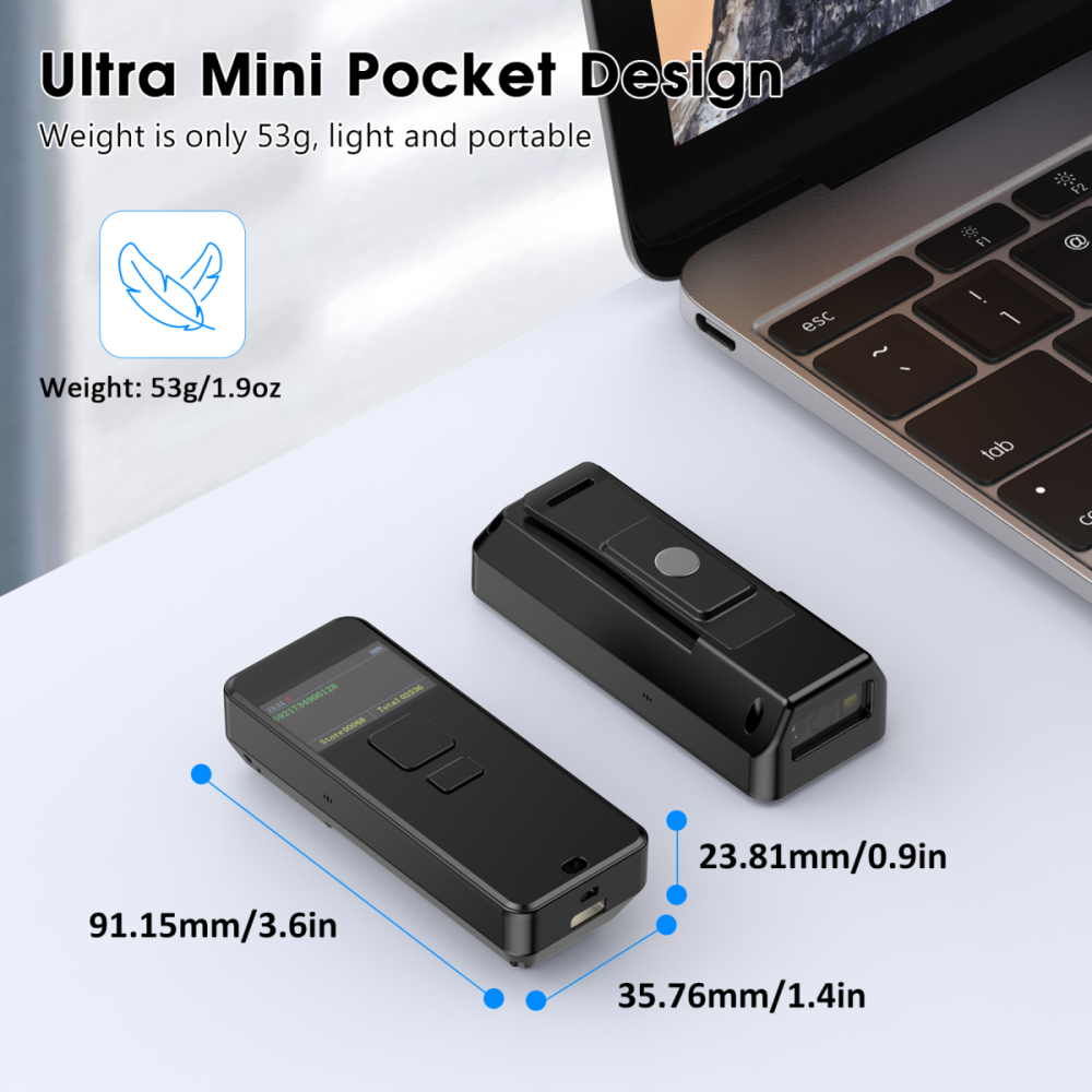 Portable 1D 2D Wireless Barcode Scanner with LCD Display